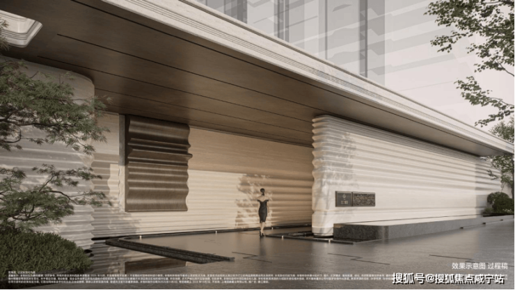 弧形仿石铝板勾勒立面层次,门厅、柱体、台面皆以柔弧过渡,不同材质成多倍投入以达最佳效果,打造温润高贵、典雅内敛的独有气质。