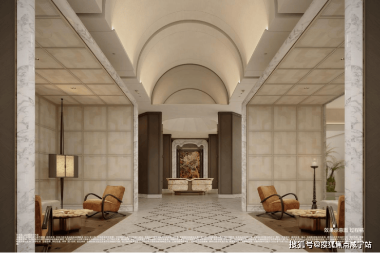 归家八角厅:以法式为底蕴,地面与墙面精选贝金米黄大理石与卡拉白大理石铺陈,纹理如山水画般自然流动。