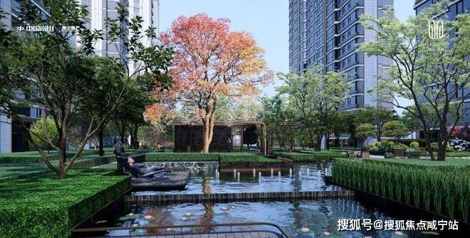 建筑们围合出的中心花园中,州桥老街、秋霞圃、远香湖、古猗园、紫藤园、银杏古树等嘉定6景被南山地产提炼、转译,形成了具有在地文化特色的6大景观主题空间。