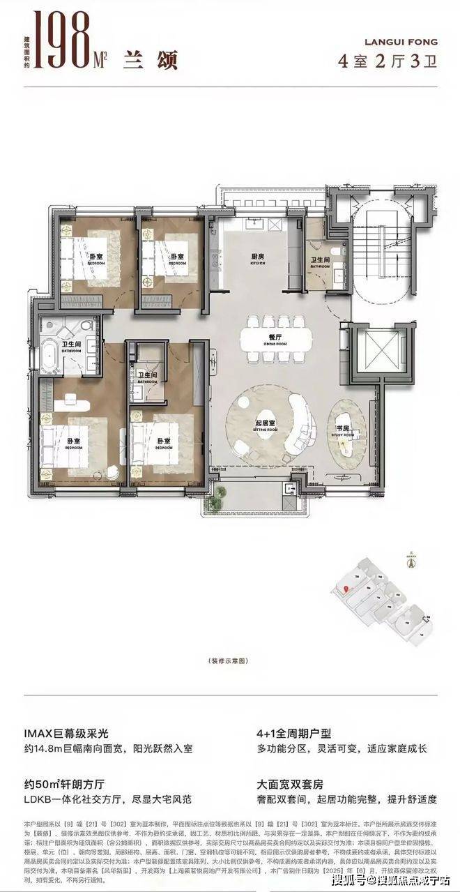 现场只做了一套198平风貌平层的样板间,这应该也是上海风貌产品中唯一做了精装修的项目。从样板间展示来看确实做了很多特色创新,细节亮点很多——