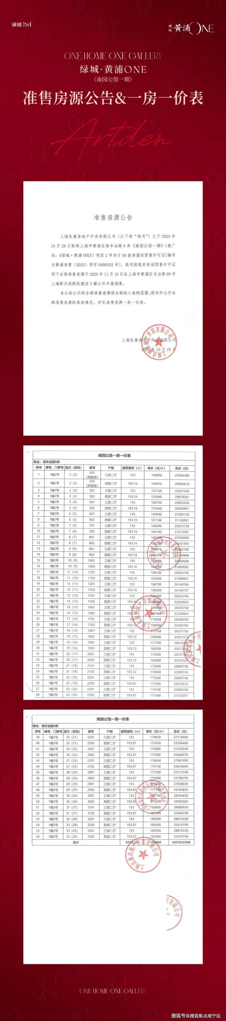 首开一期56套,均价17万/m²,建面约155-193㎡3-4房,主力总价约2700-3400万,开盘时间:11月16日