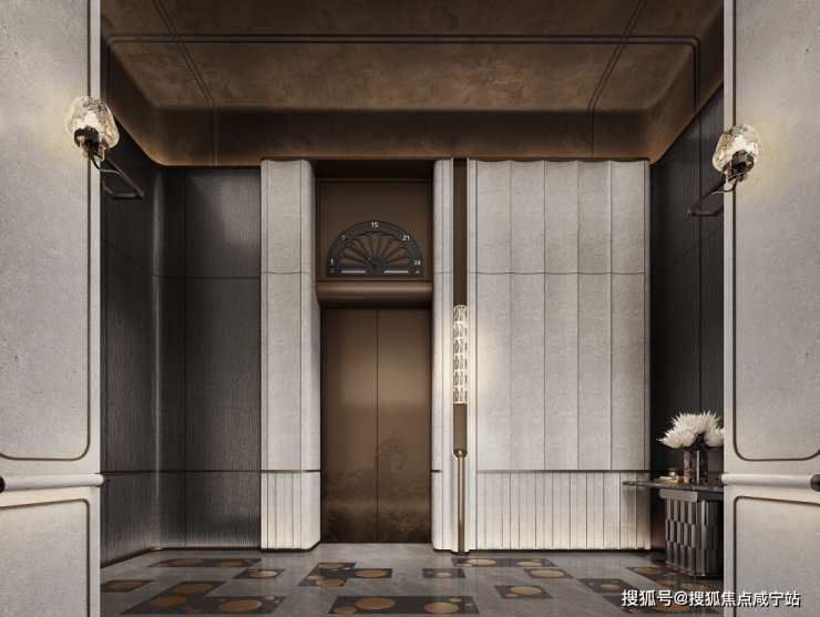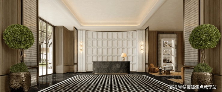 归家大堂层高约6米,融合传统门庭规制与现代酒店仪式,营造极具尊贵感的归家体验。