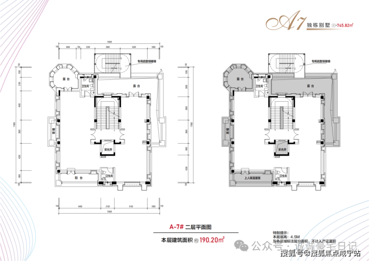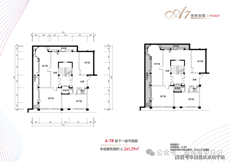 布局:地上三层(4.5米层高)+地下一层(6.2米层高)+900㎡花园