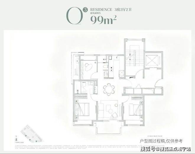 三开间朝南的飞机户型,搭配独立景观阳台,既保证了各卧室的私密性,又实现了优秀的南北通透效果,以舒适门槛即可抢占滨江价值高地,绝对是手慢无的热门之选。