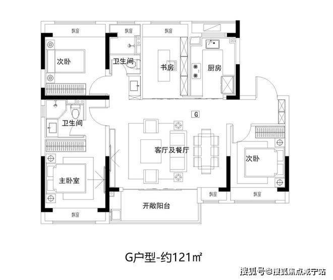 建面约121㎡ 4房2厅2卫,宽境4房,拓宽空间尺度;大开间、进深短,通透采光;主卧独立卫浴,优雅随心的寝居感受。