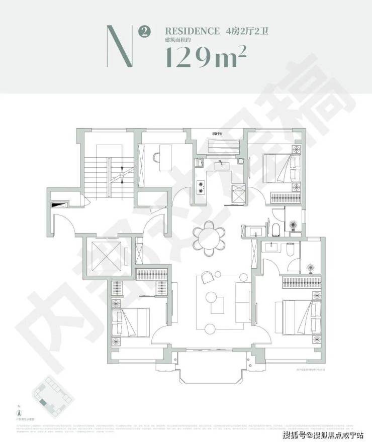 这套户型非常适合二胎家庭或者三代同堂家庭!四开间朝南+双套房设计、LDKB一体化,厨房、餐厅、客厅外接转角宽景大阳台,空间感十足!