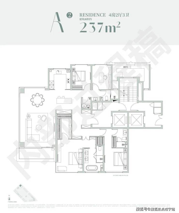 进门玄关设计了独立收纳储藏空间,可做八百库使用;LDKB一体化,中西双厨房、餐厅、客厅外接弧形转角宽景大阳台;主卧超大尺度套房设计,边套全落地玻璃景观视野超绝!南向次卧套房+阳台,兼具尺度感与隐私性,实现家庭成员之间的居住平权。