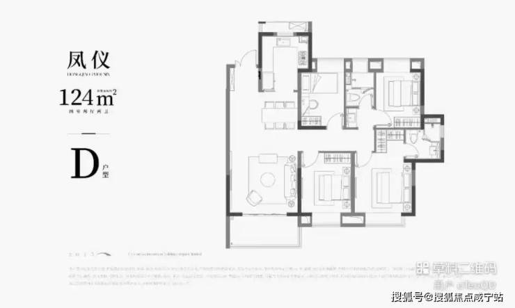 D户型 | 4室2厅2卫 | 建筑面积约124㎡