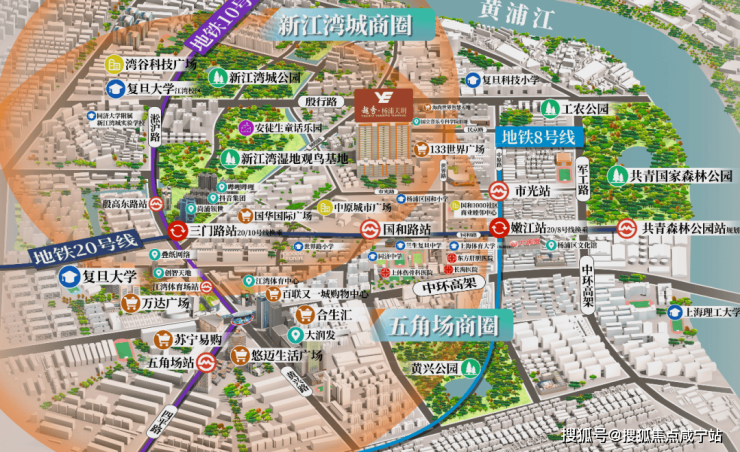 无论时代如何变迁,都市的繁华璀璨,注定需要有完善的配套设施所支撑,既要有繁华的都市圈,也要有舒适的生活圈。从位置上看,越秀杨浦天玥雄踞江湾-五角场区域,主城中环旁,周边集交通、商圈、文教、娱乐等配套于一体,拥揽醇熟生活,既能享受都会,又能栖息自然,带来繁华与繁花兼得的生活体验。