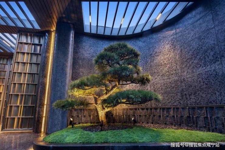 为了给业主一个完美的归家仪式感,项目设计了长约35m宽,约5.1m高奢阔门头,且有名贵黑松迎客。