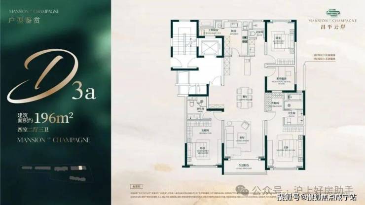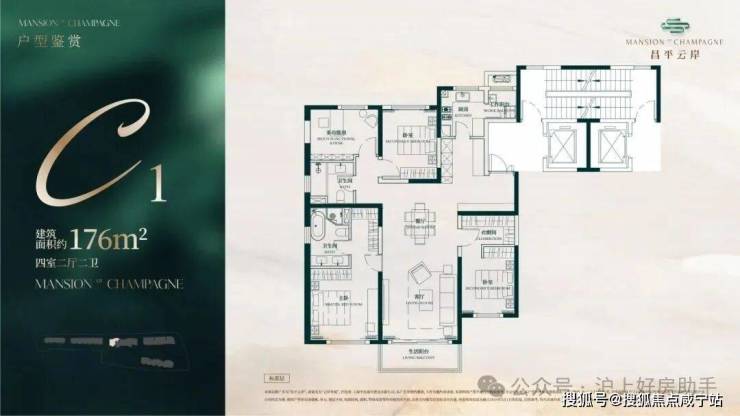 此户型最靠近苏州河,特地设计了 270度转角阳台直面苏河一线景观!4个套房设计,尊崇感十足!此户型仅有6套,珍藏属性拉满!