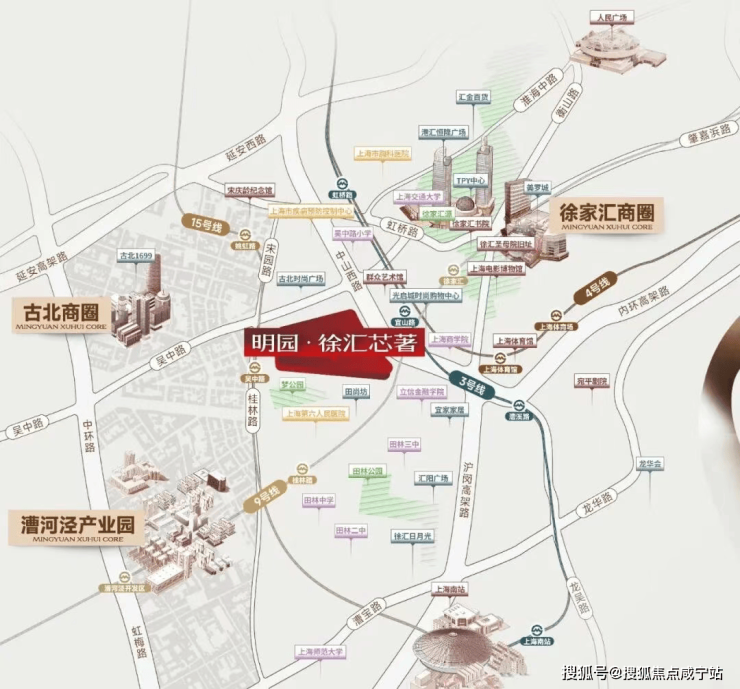 三区交汇 催生活力与繁华,明园·徐汇芯著坐拥徐家汇CAZ、古北CAZ、漕河泾开发区,三大辐射圈,享国际繁华版图。