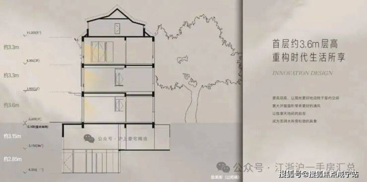 约3.6m首层层高,阔尺采光面。