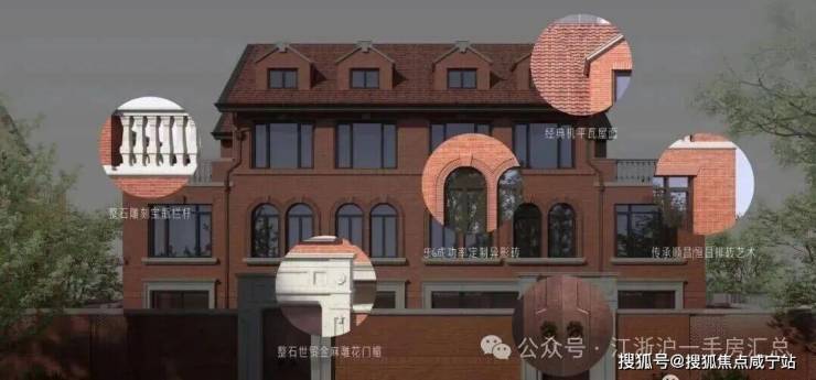 同款砖艺与屋面瓦材,随处可见天然石材整石雕刻工艺,新一代玖里系水岸风貌作品。