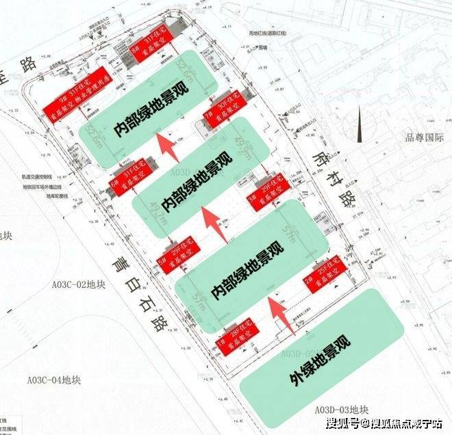 面对这样一个方正的长条形地块,多数项目大概率会按照常规思路,在社区中间打造一个“楼王”独享最优楼间距与核心景观。