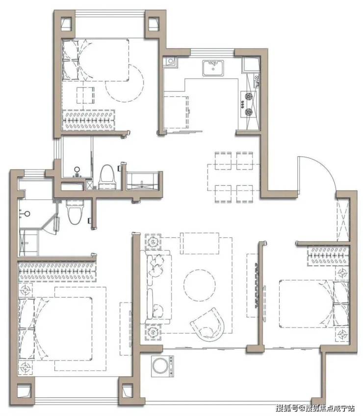 论产品:建面约100-145㎡3-4房“全明星”产品,无连廊+无过道的飞机户型,室内的实际使用空间极其出众。