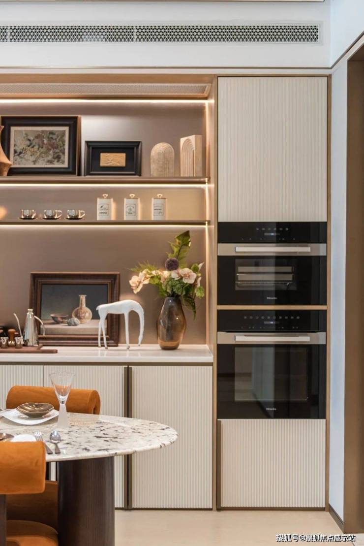 陆家嘴世纪·臻邸☎售楼处电话/地址 400-880-0703 √√(营销中心)自入户玄关起始,淡雅的岩板背景结合温润的木色线条,奠定了归家的基调。