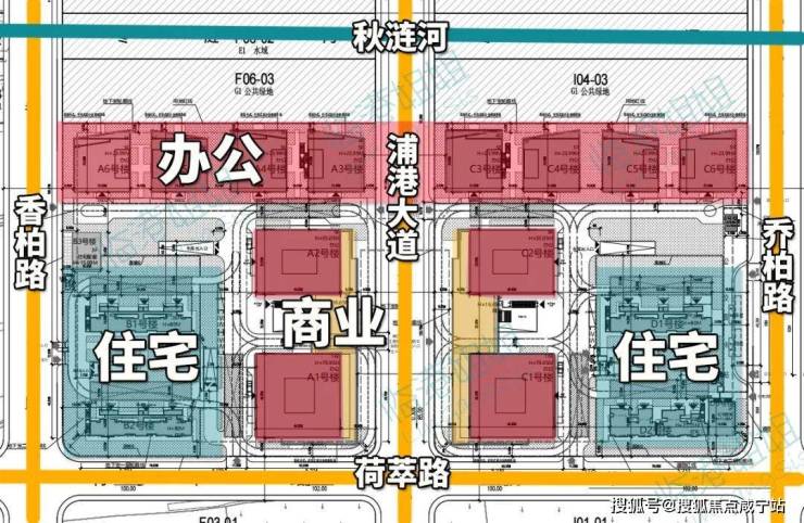 住宅方面,共计有4栋住宅楼,至少1250套住宅,3栋住宅为26F,1栋为23F,大门分别开在乔柏路和香柏路上,主力户型建面约71-151㎡,房地联动价3万/㎡,中小户型比例不低于60%。