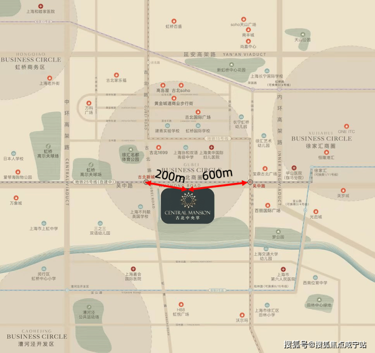 轨交方面:「古北中央萃售楼处电话:400-8800-703」是准双轨交的地铁房,现有的是直线距离约700米的最美地铁站之一的15号线吴中路站,未来还会有25号线的古北新城站,站点位置就设在「古北中央萃」西侧不远处。