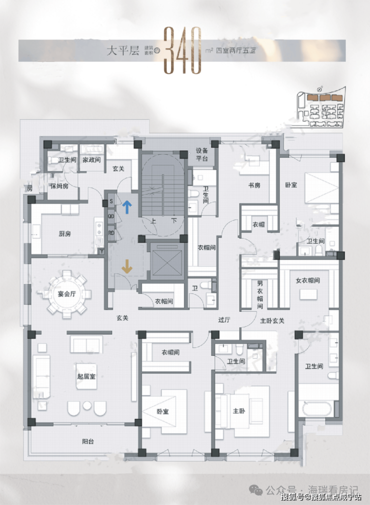 1号楼为保障房,2、3、4、8#为洋房,5、6、7、9、10#为别墅。洋房建面约170-340㎡,别墅建面约430-690㎡户型图如下:170㎡这户型房源不多,总价段应该不低于2500万。340平米这个户型设置了保姆房和家政空间,还分别设置了两个入户门,仪式感拉满。三间卧室,全部为套房设计,书房都有独立卫生间和储物空间。而这个户型房源会略多一些,预计总价应该在5000万+。别墅是大头,且都是拼接型别墅:地上三层,地下一层,从430㎡-560㎡-690㎡三种,都是四房四厅五卫的设计。预判8000万应该是其主力总价段本地块属于上海市低密度住宅的核心区,区域内住宅地块出让及供应皆极为稀缺,且周边交通便捷,居住氛围成熟,生活配套完善,为西郊地块的核心优质资源;