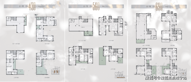 430㎡户型:总价约8800-9000万,得房率120%,含60㎡庭院与地下两层空间;