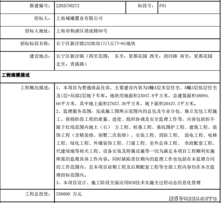 根据招标文件显示,预计提供45套洋房平层,23套联排别墅,装修交付,共68套房源,可能会在2024年入市!紧邻长宁豪宅鼎邦俪池和夏都花园。目前项目计划5月15日开工,计划竣工时间为2025年7月31日。新泾镇232街坊17/1丘77-01地块位于上海市长宁区新泾镇板块,地处西郊高端住宅区,东至夏都花园,西至剑河路,南至夏都花园,北至青溪路,土地出让面积23047.8平方米,计容面积27657.36平方米,容积率1.2,出让宗地用途为居住用地。