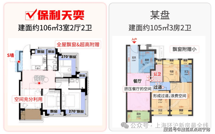 全屋飘窗+双转角飘窗:客厅、餐厅、卧室均可享受自然光,视野开阔。
