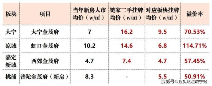 据贝壳数据统计,金茂府与同板块二手房相比,挂牌均价比板块均价高出50%以上,最高溢价甚至突破114.71%!