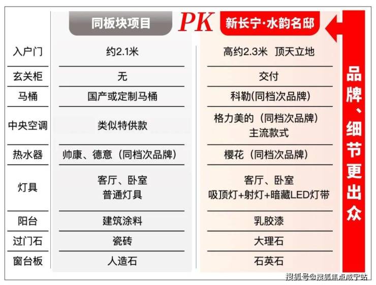 「新长宁·水韵名邸」售楼处电话: 400-960-1656项目客厅、卧室都有吸顶灯+射灯+暗藏灯带,造价高,能营造不同的灯光氛围,而同板块项目是普通灯具;项目阳台用的乳胶漆,别家用的建筑涂料;过门石、窗台板这种容易被忽视的细节,项目也用足成本,前者使用大理石,后者石英石,材质都比板块内其它项目好。