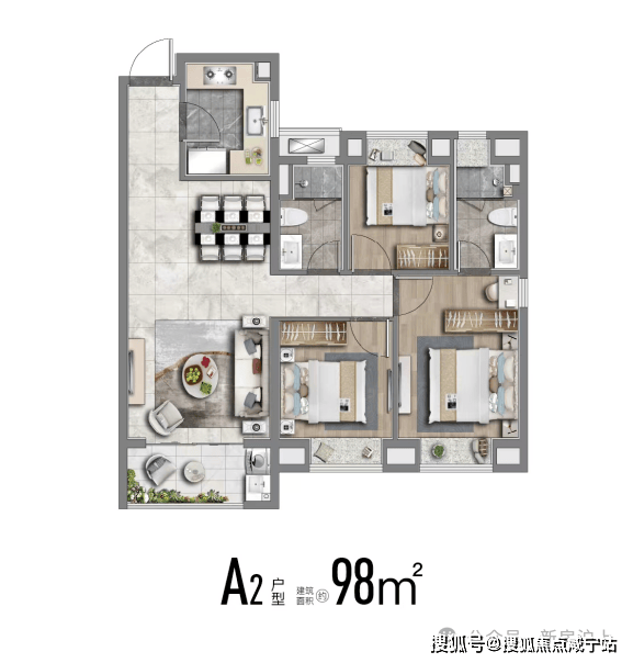 建面约98-124m²3-4房