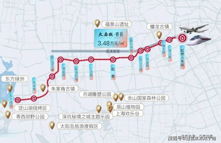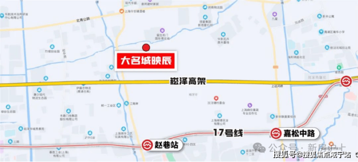 此外,从「大名城映辰」出发,乘坐17号线往西7站直达青浦华为研发中心,对于华为上班的科创人士,也是非常友好。