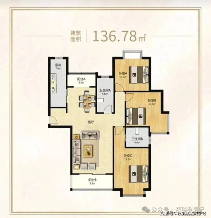 4号401室建面约136.78m²3房,总价10169045元