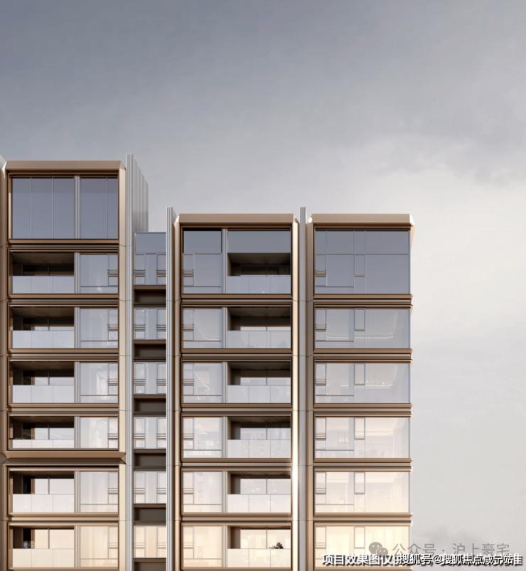 项目本次的边套设计了大量的飘窗、转角飘窗、主卧270度落地窗等设计,所以整个立面运用了大量的玻璃,构建出了非常极致的窗墙比。