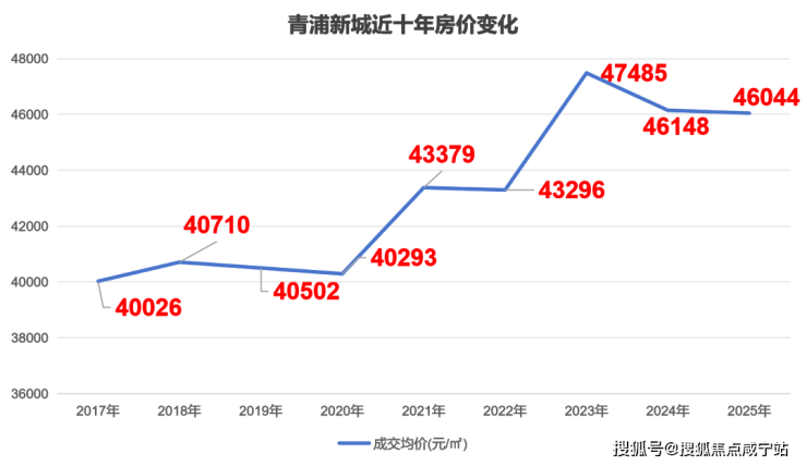 据克而瑞数据统计,青浦新城2017年房价就已经达到4万/㎡,最近两年更是涨到了4.6万/㎡。