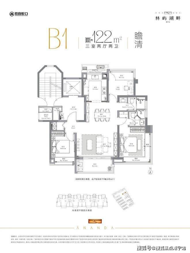 上海嘉定招商林屿湖畔建面约122㎡3房2厅2卫双阳台
