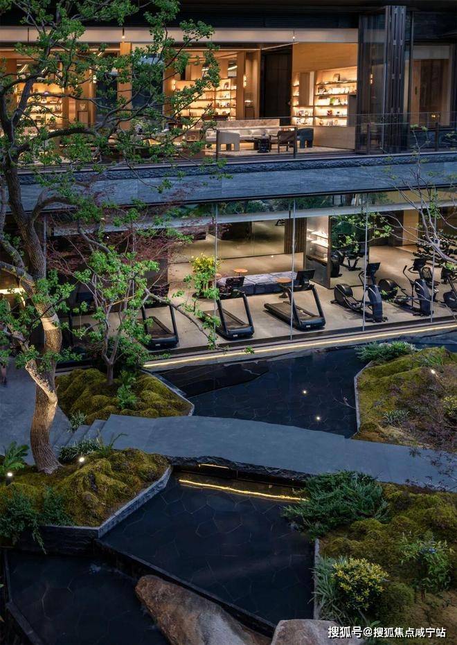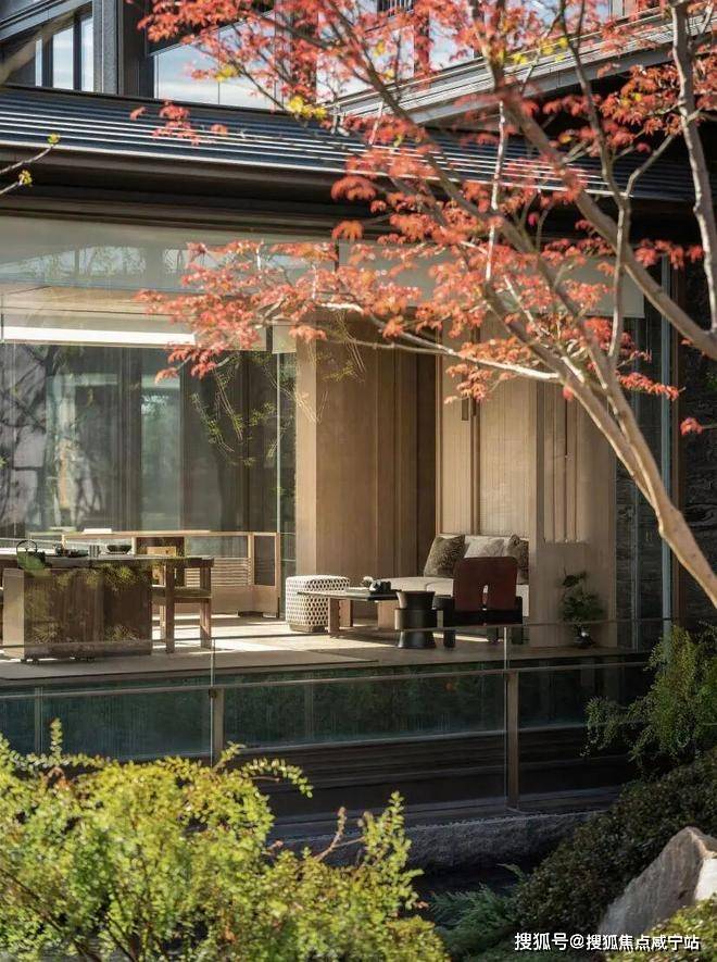 「松风枫影」的归家门庭,以苍劲的油松、灵动的枫叶作伴,阶梯式水景潺潺流淌,将城市喧嚣悄悄滤去,玉石照壁的隐贵意蕴,更添归家的仪式感;约 6 米地势差的下沉式庭院中,太行金景石层叠,岭南古桩铁冬青与原生乌桕相映成趣,瀑布落溪、溪转成涧、涧聚成池,让 “山水”雅韵 流淌进生活里。