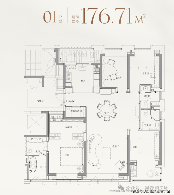 而建面约177㎡01室,则针对性地打造为4房格局,精准契合二胎家庭或三代同堂需求。