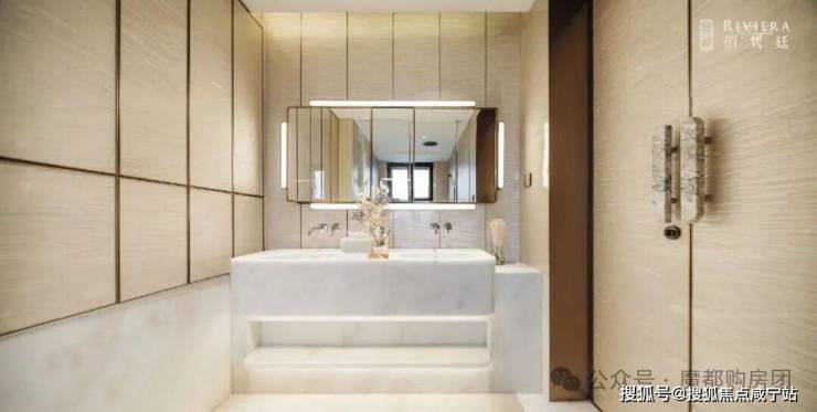 阳光满溢,尤其主卫罕见实现朝南采光,搭配奢华的双台盆、马桶间、浴缸与淋浴的“四件套”配置,尽显高端居住品质;