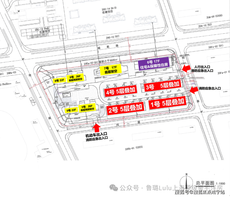 从规划方案来看,「翡雲悦府」二期楼栋的分布总体呈南低北高,东低西高的格局。东南侧分布4栋叠墅,西侧排布2栋22-26层的大高层,北侧排布2栋17层的高层,地块内保障房位于东北角。
