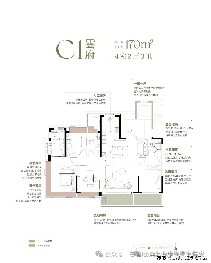 项目高层以L型布局绕社区外围围合而立,且为南北朝向建筑规制,板块内此前未有且此后再无(剩余地块条件不予许),实现最优化的资源共享。
