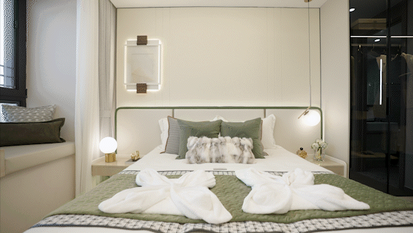 主卧两侧乐享家定制衣柜,为男女主人进行合理分区,减少传统抽屉的设计,提升收纳效率。