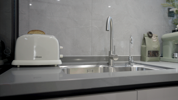 水槽右侧新增怡口末端净水机,同时也在厨房空间内预留了冰箱位置。