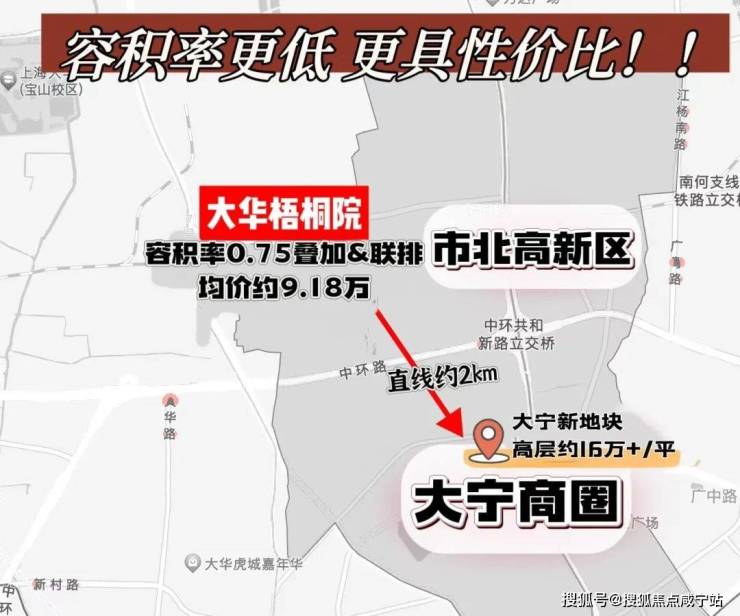02、其次,项目与市北高新区&大宁商圈的直线距离仅约2km,大宁高层的价格可以买到大华梧桐院的高阶改善别墅!