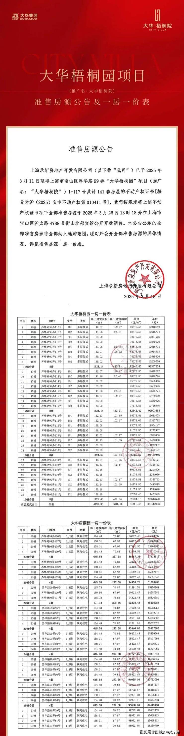 ✨✨大华梧桐院售楼处电话: 400-8800-703✨✨上海去年土拍中,大宁新地块高层预计售价约16万/㎡+,门槛1500万级。也就是说,未来大宁的高层起步价格,能买到大华·梧桐院约0.75的纯粹低密别墅。