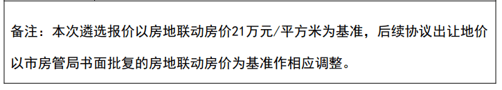 根据评分遴选相关事项,本次遴选报价以房地联动价21万元/㎡为基准。