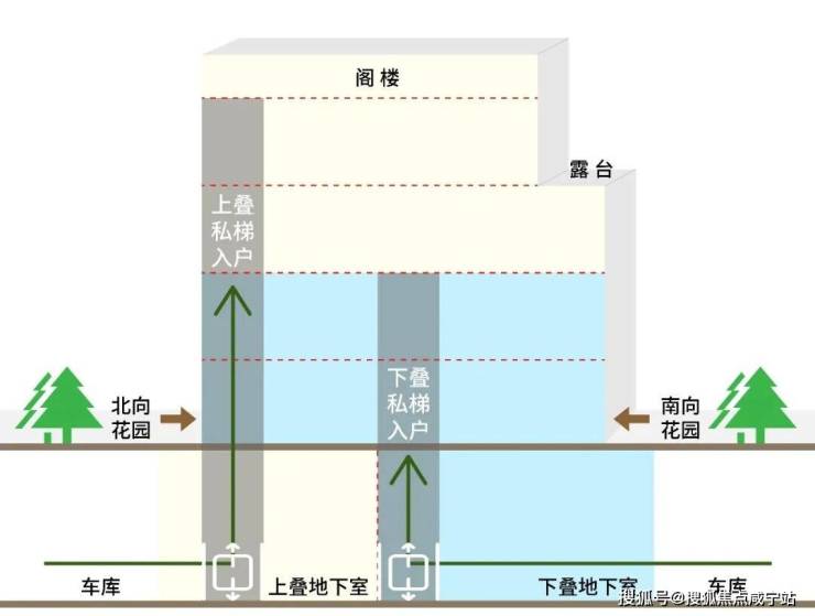 首先,上叠是北向私享入户花园,独门独户,室内私家电梯,尊崇感与私密性都有保障。
