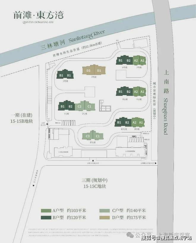 浦东三林永泰三里城二期定名「前滩·东方湾售楼处电话:400-8800-703」该项目容积率2.0,拟建16-17F高层,可售商品房364户,保障房48户,自持房136户。