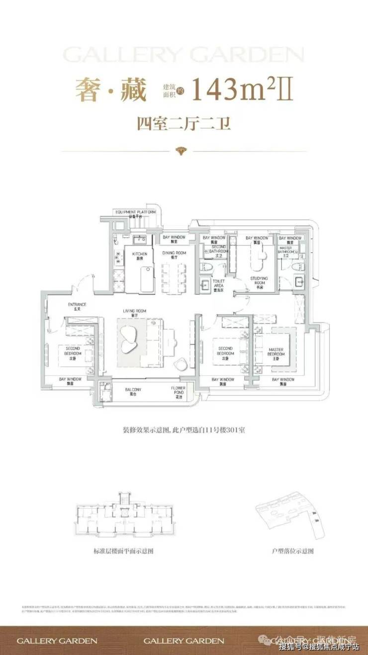罕见七飘窗设置,主卧还是约270°转角飘窗,可多角度欣赏景观,同时大大增加室内使用面积,据悉七飘窗合计约12平米。