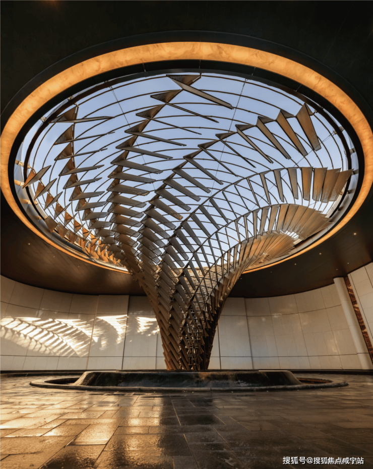 海派漩心的顶部,是由室内灯光设计大师“关永权团队倾力设计打造,柔和的光景效果及恰到好处的色温处理,让整个空间营造出奢华优雅的美妙质感,通过环形透光设计,在穹顶形成独一份的贵雅感受。漫步灯光之下,如同走过时间的美妙殿堂。