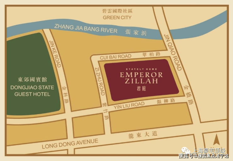 项目位于浦东张江东郊别墅区板块,龙东大道北侧。目前,这一区域有多个高端别墅楼盘正在发售中,整体居住氛围较为成熟。板块内拥有东郊国宾馆,更为该板块增添了浓厚的文化积淀和配套。距汤臣高尔夫球场800米,